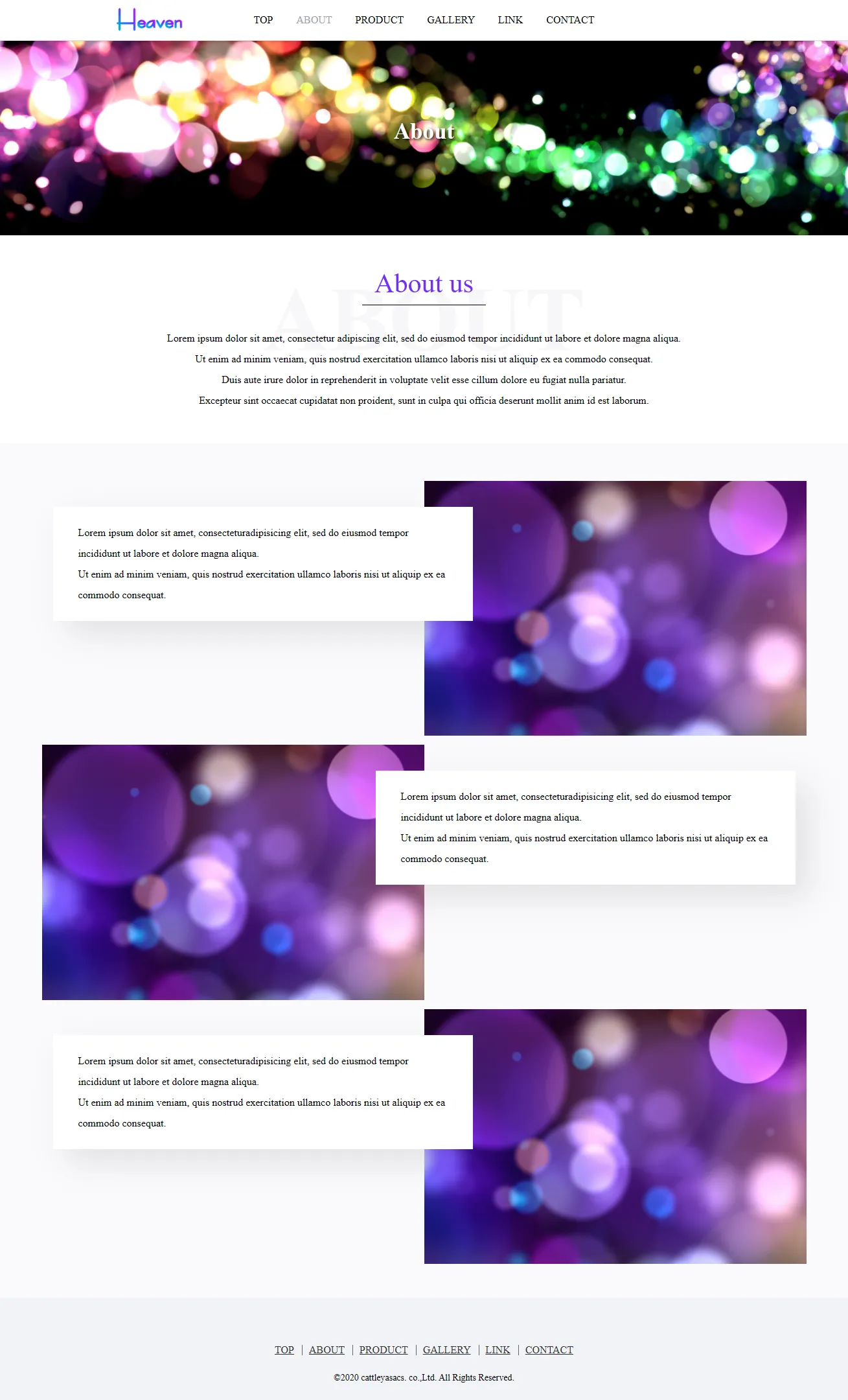紫を基調に、神秘的で幻想的な世界観を表現したテンプレートです。従来の枠にとらわれない新感覚なビジュアル体験を演出し、印象的かつインパクトを残しながらも、統一感のある世界観が出るように仕上げました。