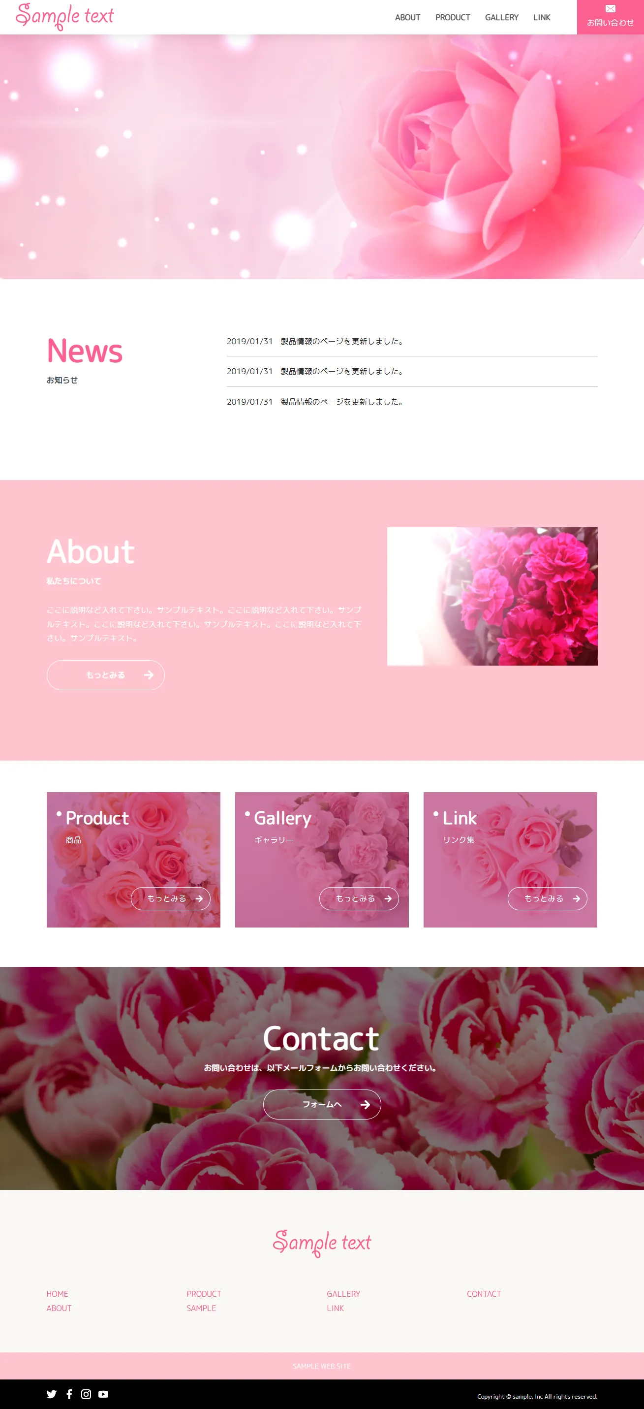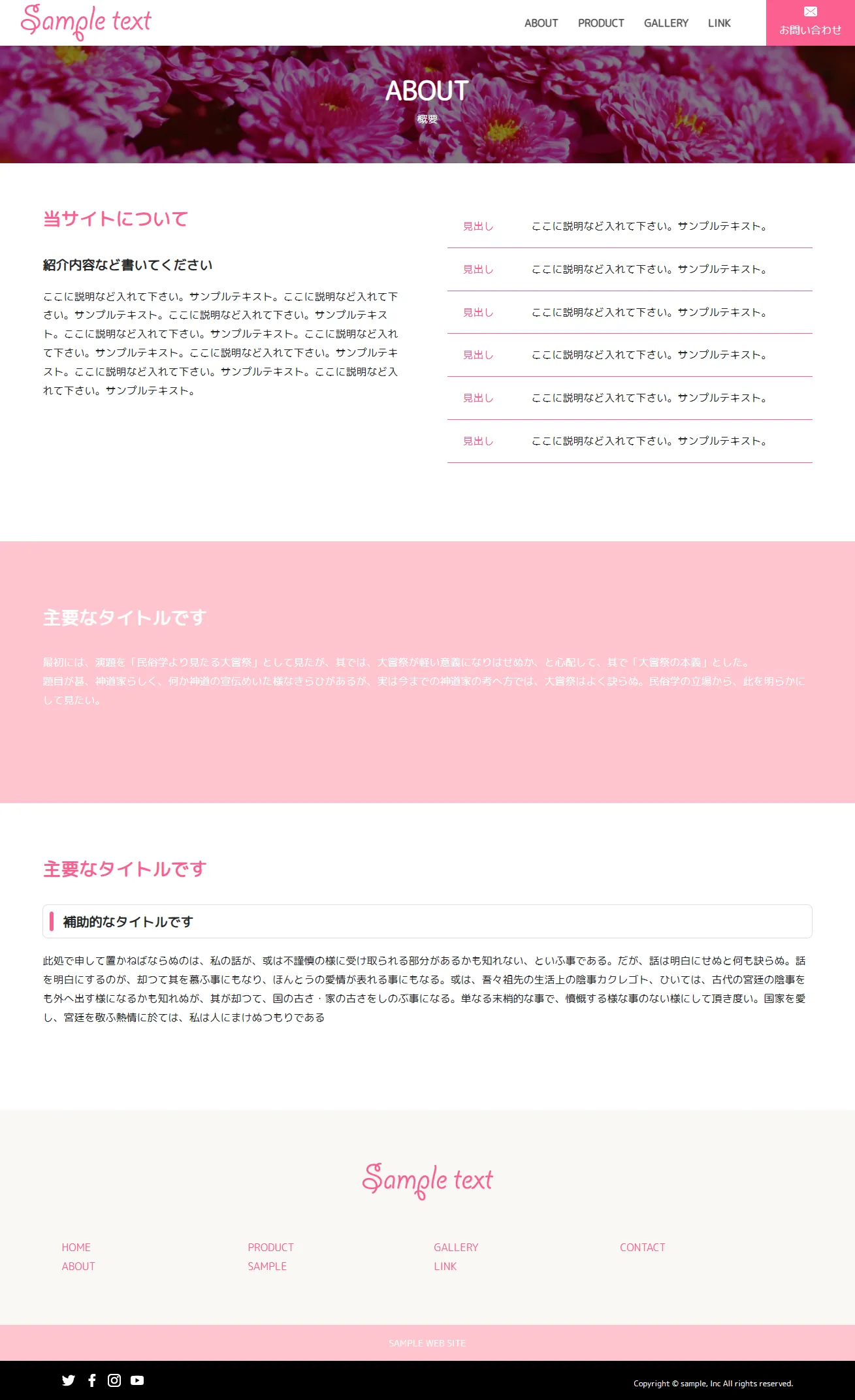 濃いピンクを基調に、女の子らしい可愛らしさや華やかさを表現したデザインのテンプレートです。直感的な印象づけを図りつつ、構成自体はシンプルにまとめているため、視覚的な楽しさと分かりやすさを両立しています。